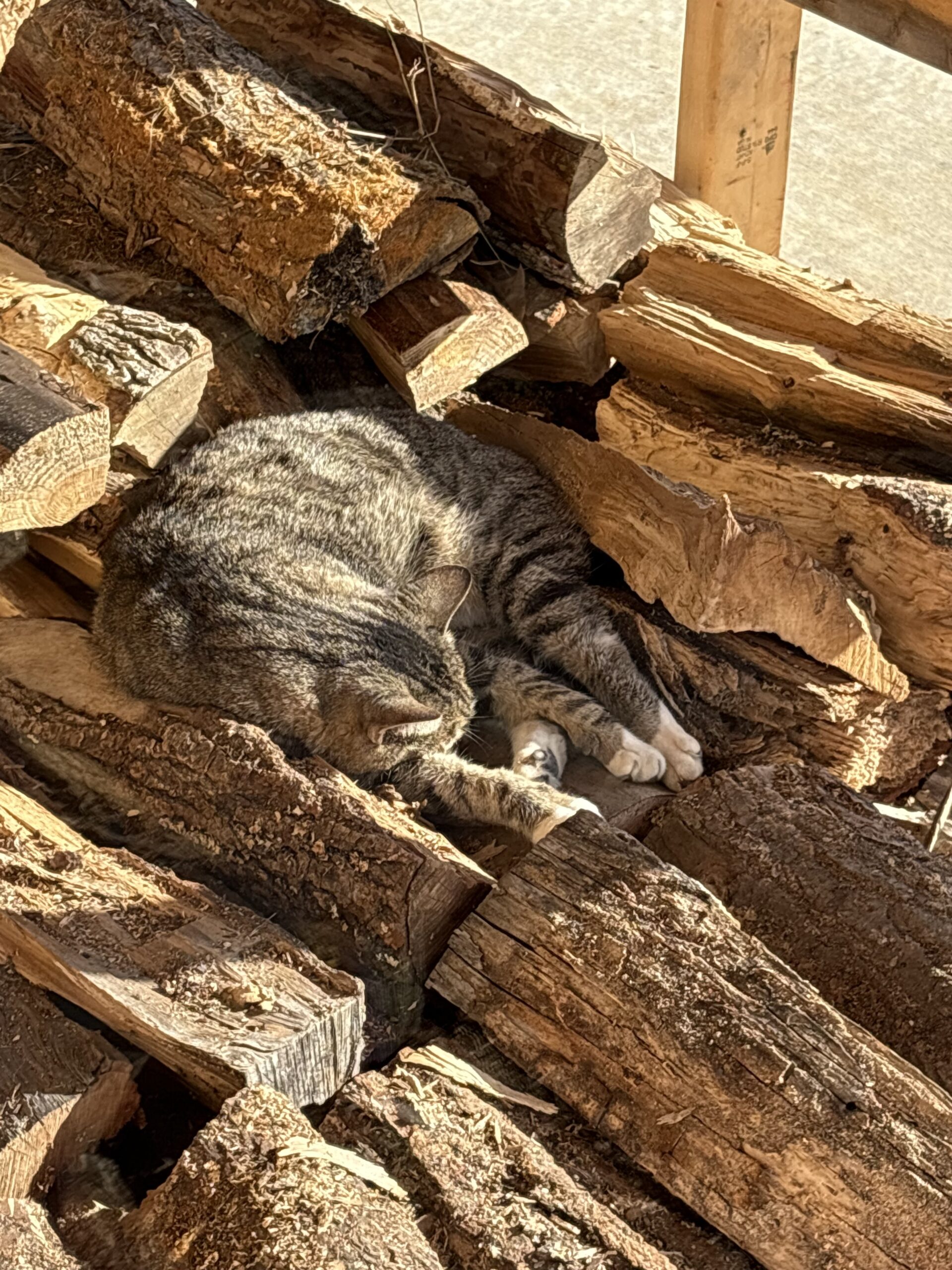 As colder weather settled in, new rhythms were established for caring for the livestock. Hay was purchased and rolled out across the pastures to keep them well fed throughout the winter months, and wood was cut and stacked to keep the farm quarters warm.