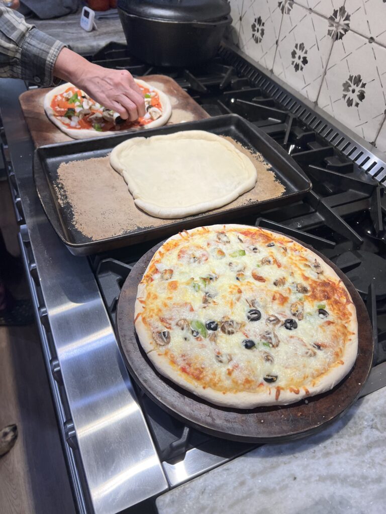 In the kitchen, the colder season meant more time for cooking and baking. Tomato sauce was canned, sourdough bakes continued, and even a few sourdough pizzas made their way onto the table.